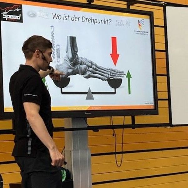 Mit anschaulichen Metaphern und bildhafter Sprache wurden Inhalte greifbar gemacht: Begriffe wie „Ankle Rocker“, „Schlagzeug spielen“, „Reißverschluss“ oder „Knie-Knö“ wurden in Übungen übersetzt, die das „Bouncen“ im Sprint fördern können. Da der „Bounce“ auch beim Springen eine große Rolle spielt, konnten die Sprungtrainer:innen wertvolle Verknüpfungen bilden. Die Athlet:innen zeigten sich bei allen Übungen aufgeschlossen, geduldig, probierten die neuen Bewegungsansätze aus und stellten sich engagiert den Herausforderungen.