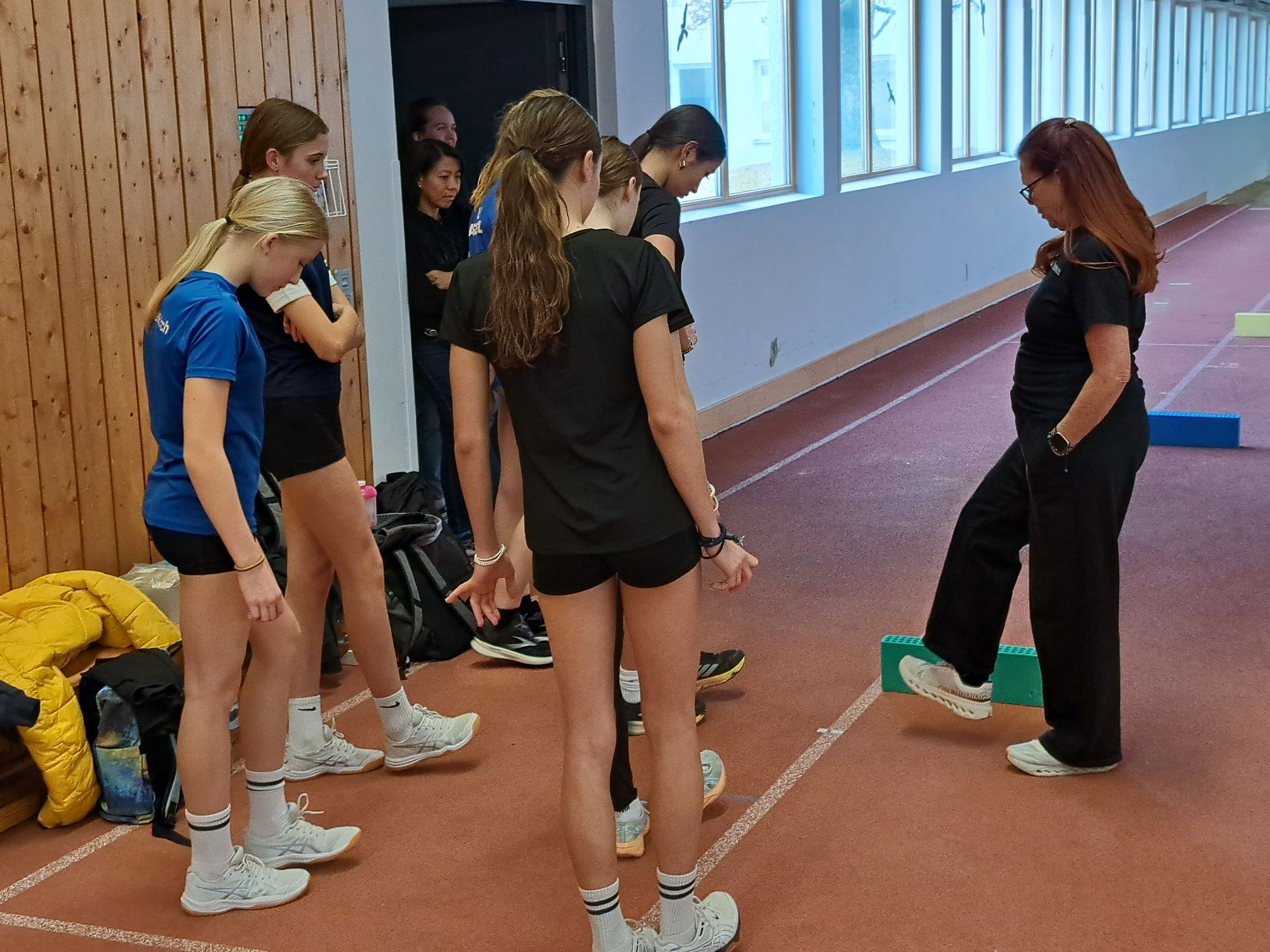 Der richtige Fußaufsatz, um sprinten, abspringen oder richtig drehen zu können, war immer wieder das Thema für die 27 jungen Talente, die von Regina und Christoph Geissler, Luca Mazzei, David Wrobel und Christian Hummel betreut wurden. Und dann musste man ja frühmorgens noch durch den leicht vereisten Rasen rund um die Sportschule marschieren, um danach mit gut durchbluteten Füßen Gymnastik zu betreiben oder Murmeln zu transportieren …
