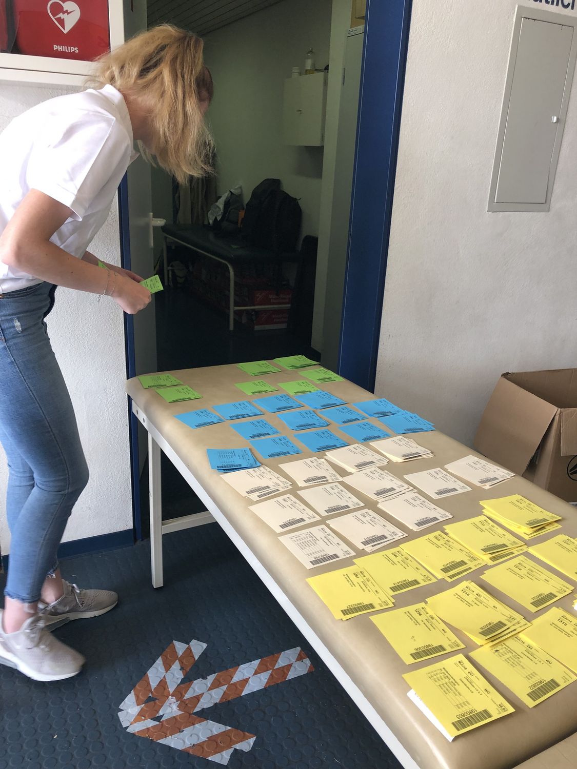 Am TIC gibt es vier Terminals zur Abholung der persönlichen Startnummer. Die ersten drei Terminals sind alphabetisch nach Nachnamen bzw. nach der Startnummer unterteilt, das vierte Terminal steht den Vereinen für die Staffelmeldung zur Verfügung. Die Athlet:innen stellen sich am für sie zuständigen Terminal an. Um mündige Athlet:innen zu fördern, bitten wir ausdrücklich darum, dass diese Aufgabe von den Athlet:innen persönlich erledigt wird! Die Trainer:innen kümmern sich ggf. um die Bestätigung der Staffelmeldungen.