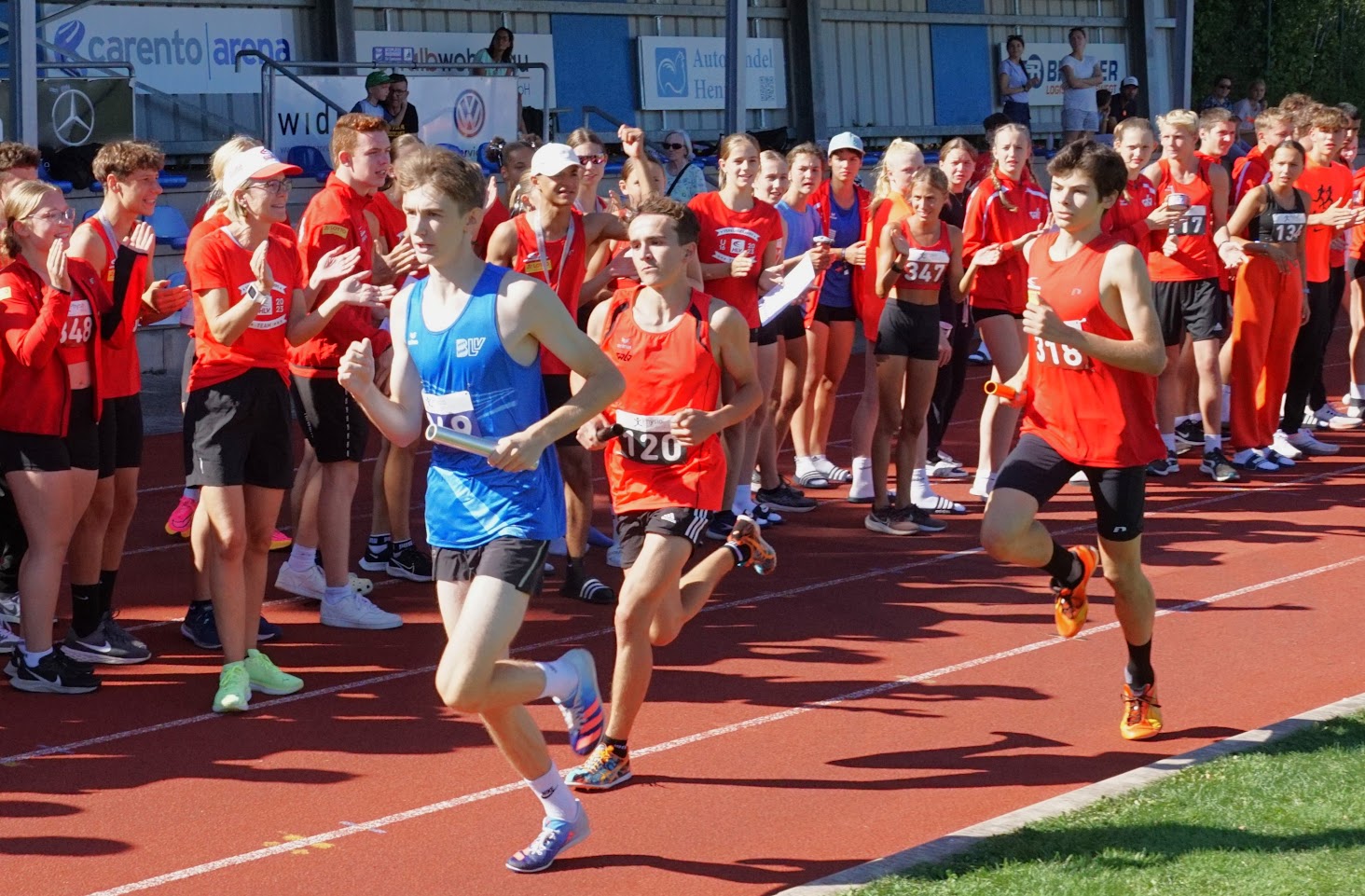 Und der wusste die Top-Bedingungen mit tollem Spätsommerwetter zu nutzen: Lokalmatador Justin Hopfensitz (TSV Oberkochen) steigerte sich bei seinem Dreisprungsieg um über einen Meter auf 13,34 Meter und rückte ebenso in die DLV-Top 3 auf wie Sina Stoll (TB Tailfingen), die den Hochsprung mit 1,70 Meter für sich entschied. Im Weitsprung verbesserte sich die ein Jahr jüngere Teresie Hess (SG Schorndorf 1846) auf 5,58 Meter und holte sich souverän den Sieg. Das gelang auch der deutschen Meisterin Mara Dümmler (VfL Sindelfingen), die nach übersprungenen 3,30 Meter gleich aufs Ganze ging und erst an der neuen deutschen Jahresbestleistung von 3,60 Meter scheiterte. Ebenfalls zwei Sprungsiege holten sich die Jungs: Hannes Klecker (SSV Ulm 1846) dominierte den Weitsprung mit 6,30 Meter, Henri Massing (MTV Stuttgart) lag im Hochsprung mit 1,82 Meter vorn. Während die Württemberger in den technischen Disziplinen überall vorn mitspielten, gelang das im Sprint und Lauf kaum. Lediglich mit Hürden gelangen zwei Erfolge: Luke Schmidt (SpVgg Holzgerlingen) holte sich in 11,30 Sekunden die Kurz-, Nina Sippel (LG Neckar-Enz) in 47,55 Sekunden die Langhürden. Sehr gut schlug sich die erstmals gelaufene 4x 800 Meter-Mixed-Staffel, die den stimmungsvollen Abschluss bildete: Nachdem Pitt Wanninger als Schlussläufer noch mal zu Bayern aufgeschlossen hatte, hatten die Weißblauen aber auch hier die Nase vorn.